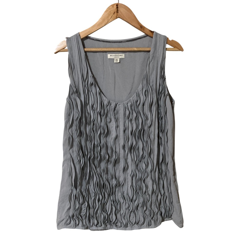 > 良品 BURBERRY LONDON バーバリーロンドン レース ノースリーブ シルク カットソー 38 グレー