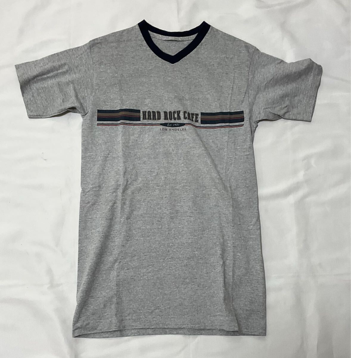 > 90年代 ハードロックカフェ ロサンゼルス 半袖Tシャツ Tシャツ 杢グレー サイズ不明 Vネック
