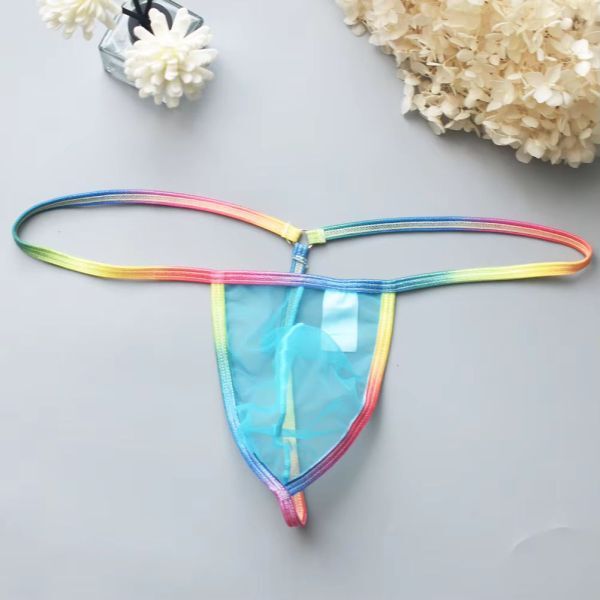 - メンズ フルシーム メッシュ レインボーストリング バックリング Gストリング Tバック ビキニ 水色 日本Mサイズ