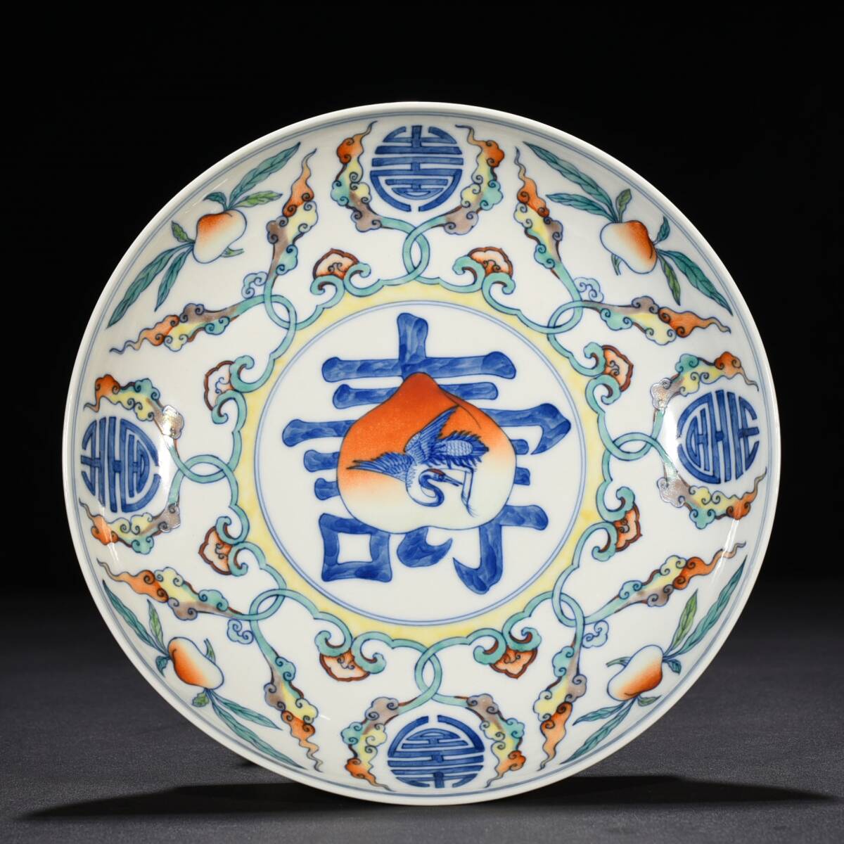 > 珍しい 清時代 雍正年製 闘彩 鶴寿延年紋盤 古陶磁器 陶芸 中国陶瓷器 唐瓷 置物擺件 古美術品 古賞物 旧家蔵出 中国唐物 819