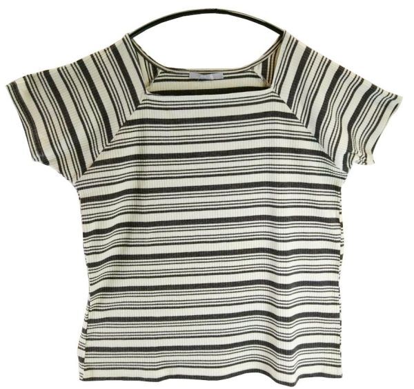 - SS2764◆ 新品 カットソー スクエアネック ボーダー柄 ニット 伸縮性有り フレンチスリーブ シンプル 肌触り良 4Lサイズ グレー 送料350円
