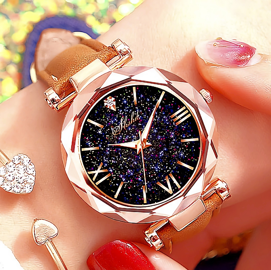 - 新品★送料無料★虹色の星空ダイヤ夜空銀河 K18PGFゴールドウォッチ チョコブラウン腕時計 誕生日プレゼント旅行連休秋ギフト国内発送