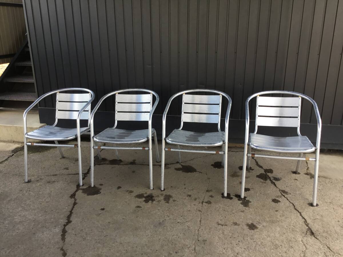 - △ y ⑤ 岐阜発/ ガーデンチェアー/ アルミ製/ イス/ 4脚セット/ 屋外/ 庭/ テラス/ カフェ/ アームチェア/ 多数あり/ 現状品/ R7.8/13△