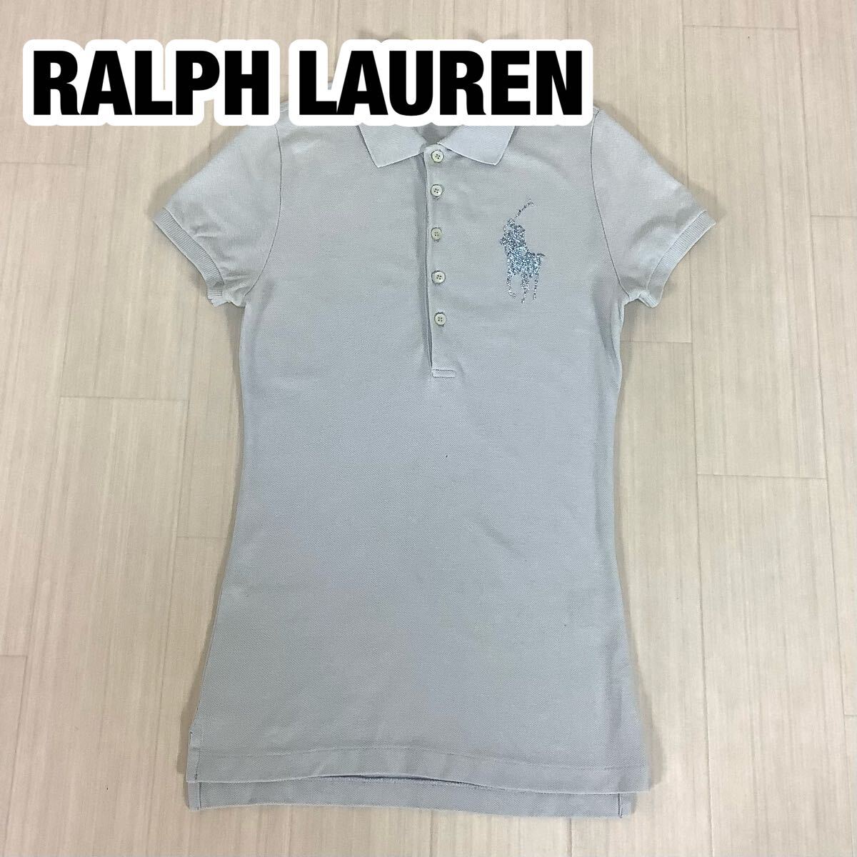 - RALPH LAUREN ラルフローレン 半袖ポロシャツ XS くすみライトブルー スパンコール ビッグポニー ロングテール 鹿の子生地