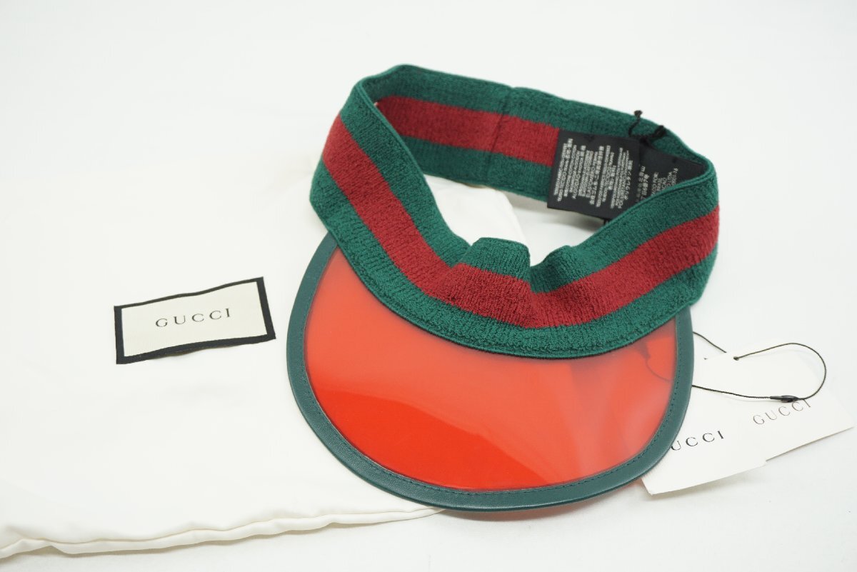 - ★【B送900円】2248 GUCCI グッチ シェリーライン サンバイザー 帽子 コットン×ポリウレタン レッド×グリーン S 57㎝ 袋付 タグ付き