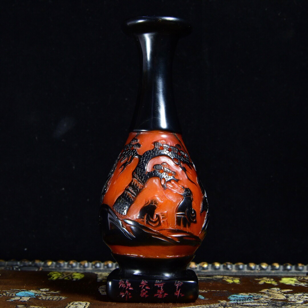 - 蔵友旧蔵出 寿山石 烏鴉皮 田黄石 細密彫 深山聚賢紋 花瓶印章 貴重品 稀少物品 置物 賞物 中国時代美術品