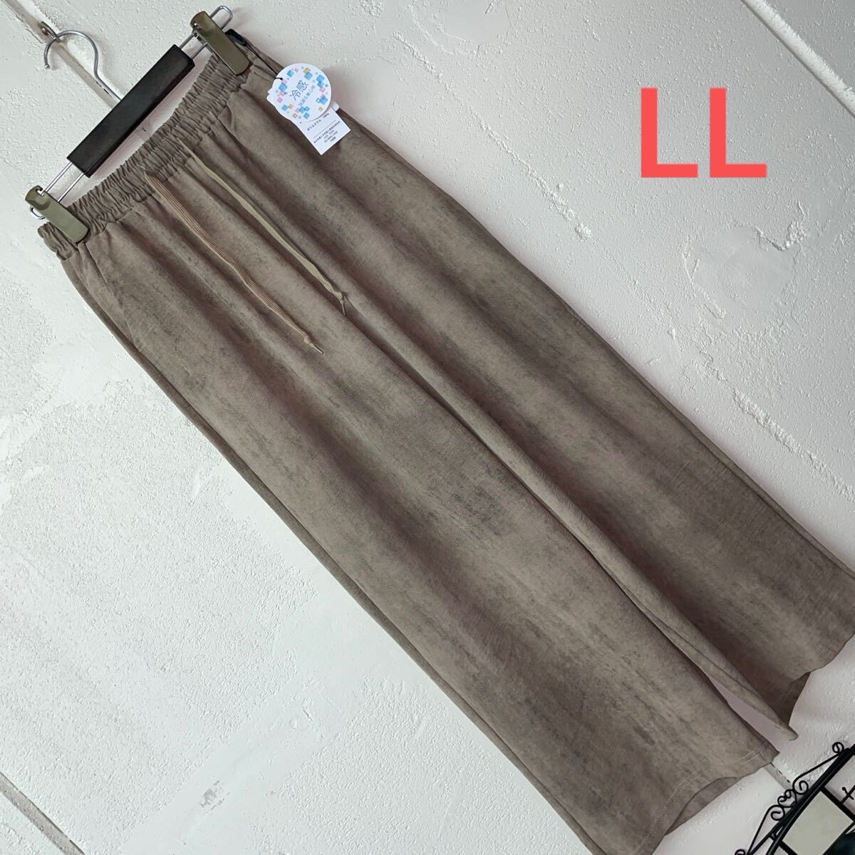 - LLサイズ冷感ウエスト紐付きむら染めパンツベージュ