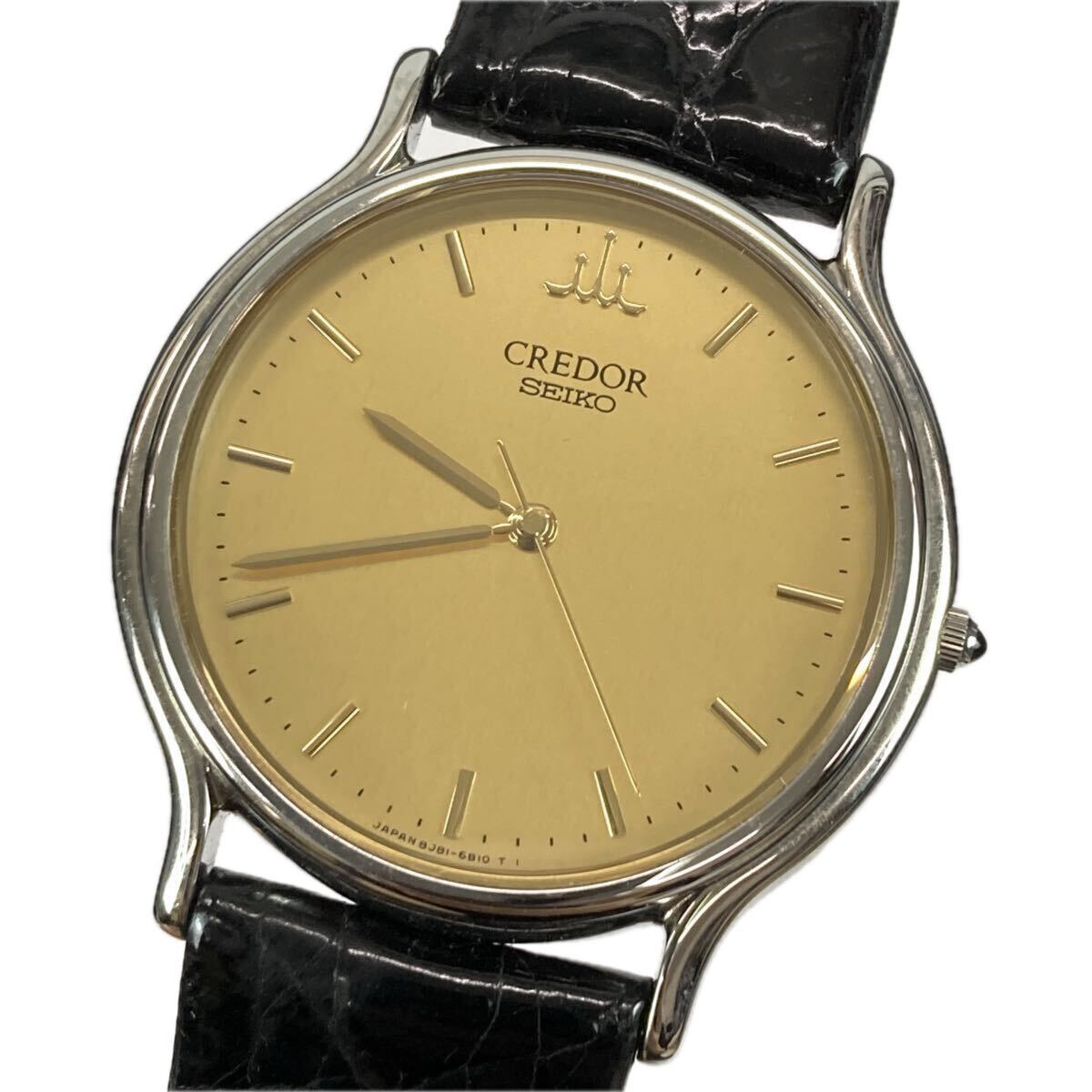 > SEIKO CREDOR セイコー クレドール シグノ ドレスウォッチ クォーツ腕時計 ゴールド文字盤 クロコベルト