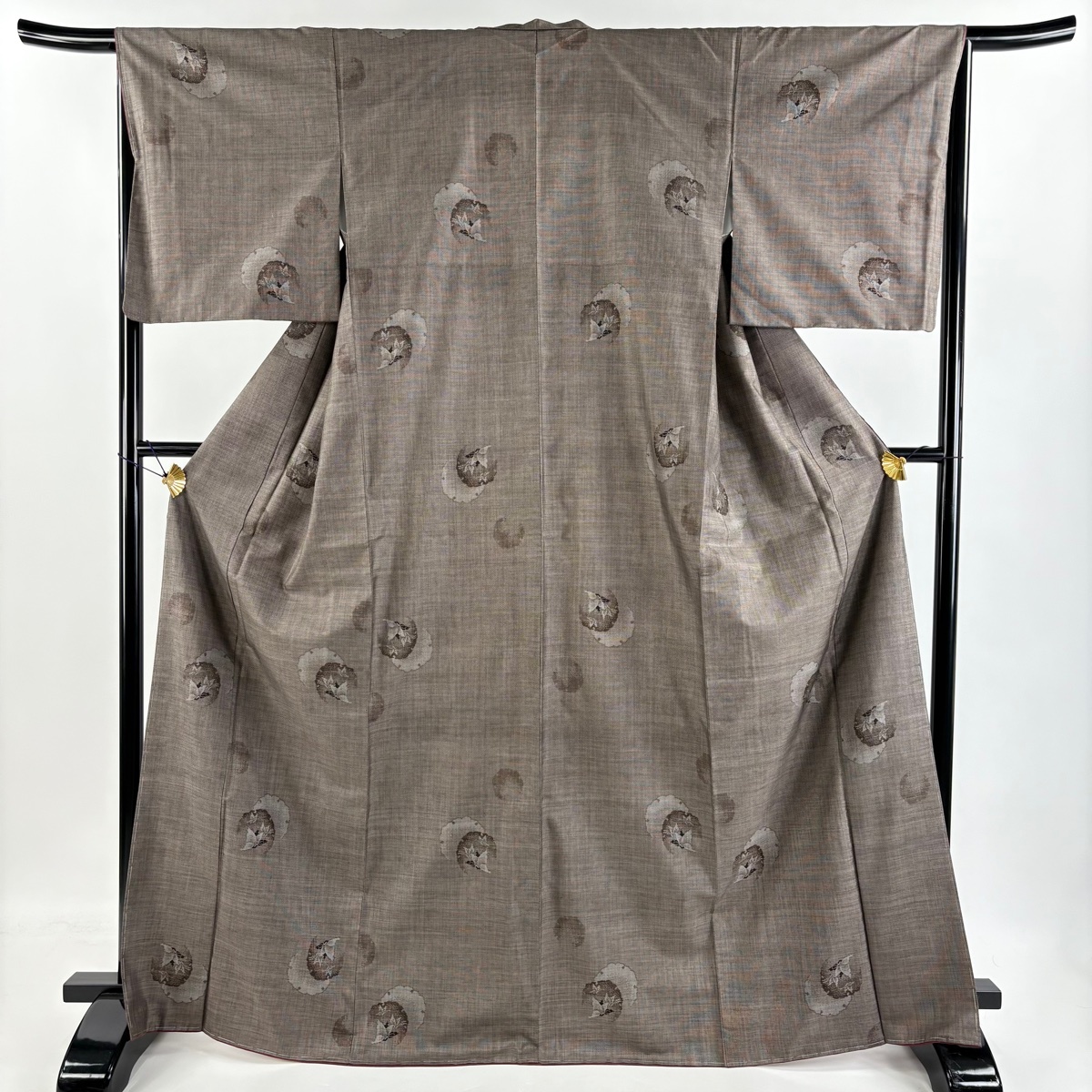 - 紬 身丈168.5cm 裄丈65.5cm M 袷 雪輪 蝶 焦茶色 正絹 美品 秀品 【中古】