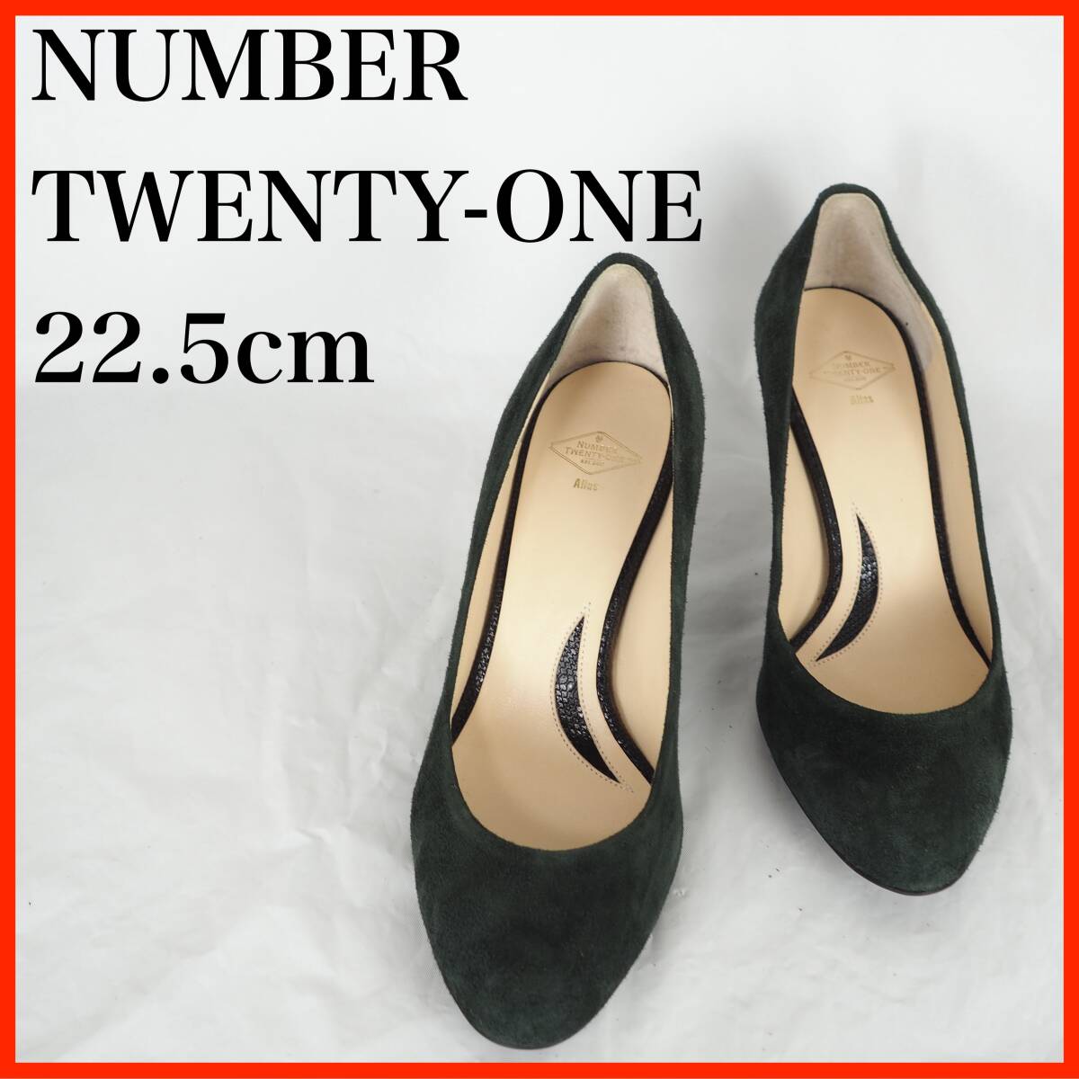 > ★100スタ★OK5185*美品*NUMBER TWENTY-ONE*ナンバートゥエンティワン*レディースパンプス*22.5cm*ダークグリーン*日本製