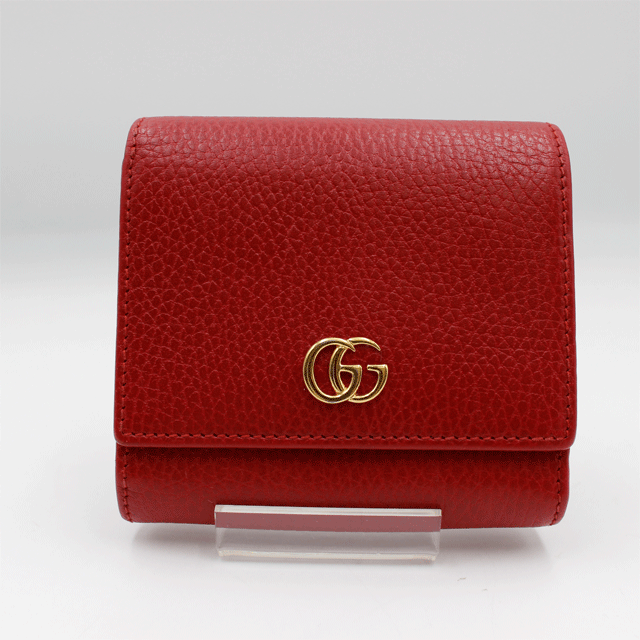 > グッチ GGマーモント 2つ折りコンパクトウォレット テクスチャードレザー 598587 レッド