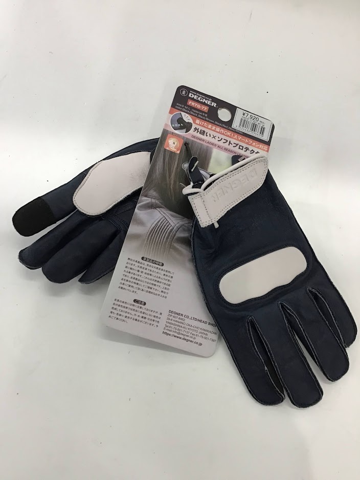 - 展示品 DEGNER FRTG-77 レディースレザーグローブ Mサイズ ネイビー ホワイト レディースオールシーズングローブ デグナー 管理3006