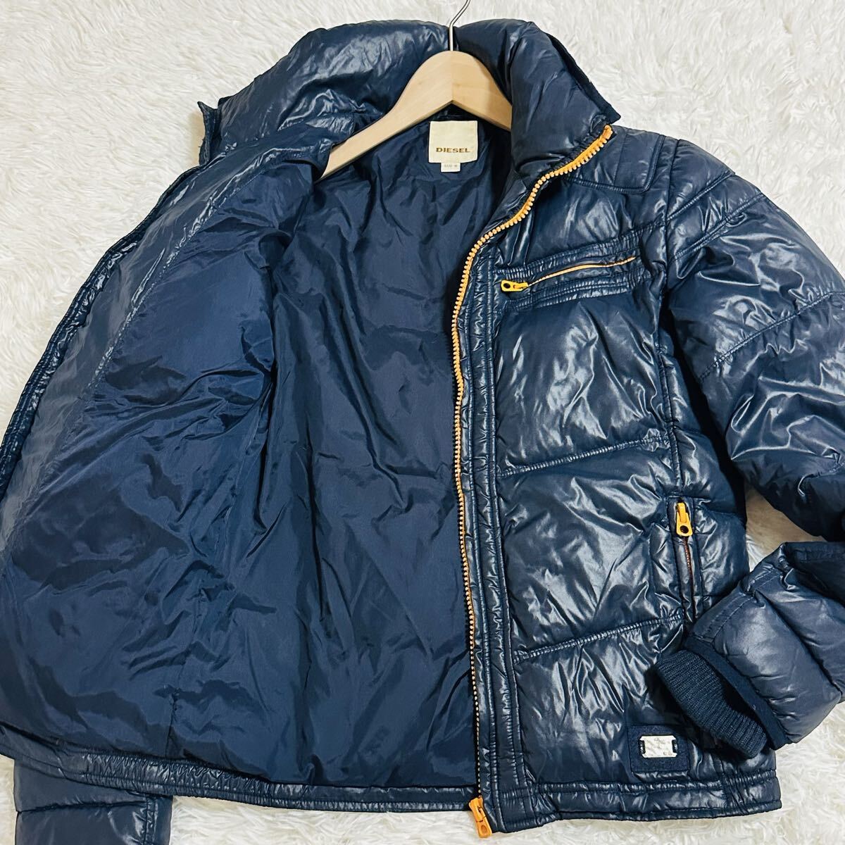 > L相当 ディーゼル ダウンジャケット ブルゾン バイカー 2WAY メタルプレート 肉厚 極暖 シャイニー 光沢感 アウター 秋冬 メンズ DIESEL