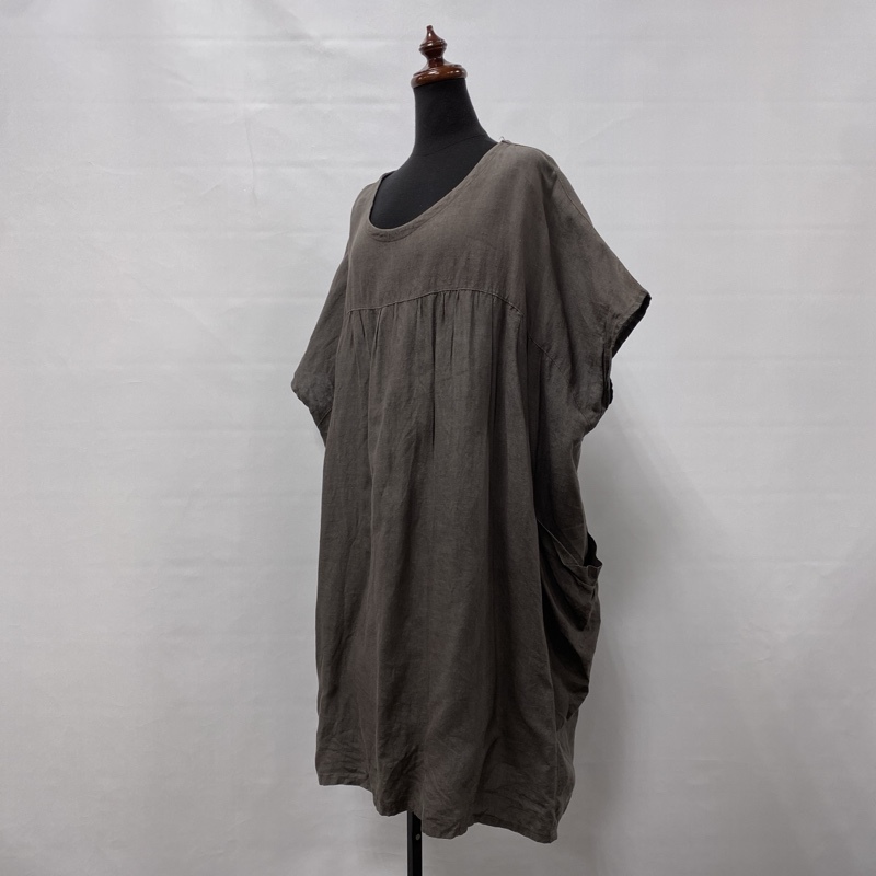 - Cheer/チアー/オールリネン/サイドポケット/ワイドチュニック/チャコール/ワンピース/麻/クルーネック/半袖/ゆったりシルエット