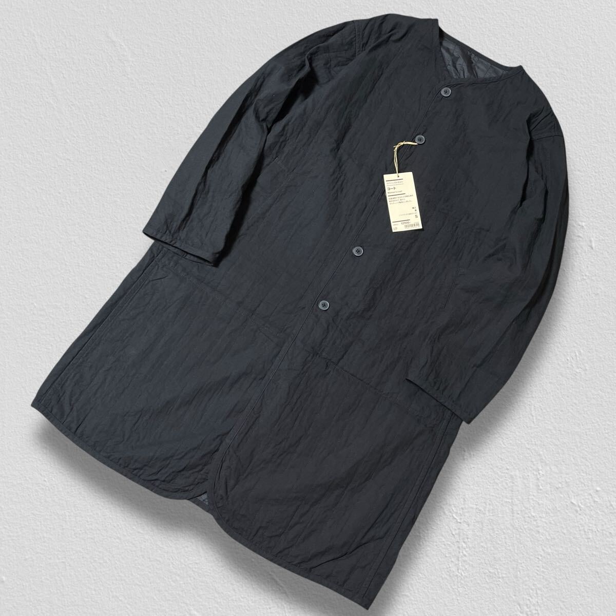 > 【新品未使用】定価12900円 無印良品 リバーシブルキルト コート ブラック S ●洗濯プレス済● MUJI アウター ロングコート 黒/574