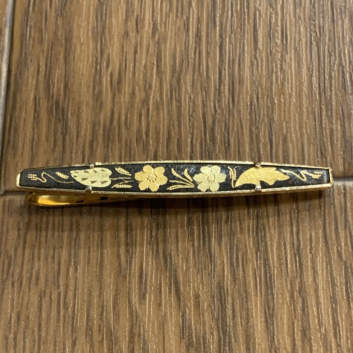 - 送料無料 US ヴィンテージ 象嵌 ネクタイピン 花 葉