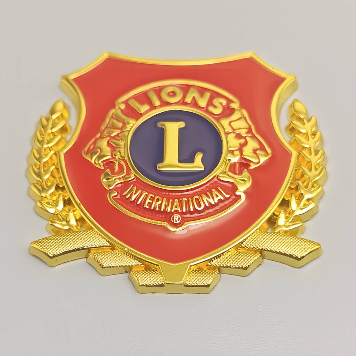 > カーエンブレム ライオンズクラブ L 金属 ロゴ ステッカー 車用 5.4cm レッド ゴールド メタルプレート シール 3D 立体 バイク t8064