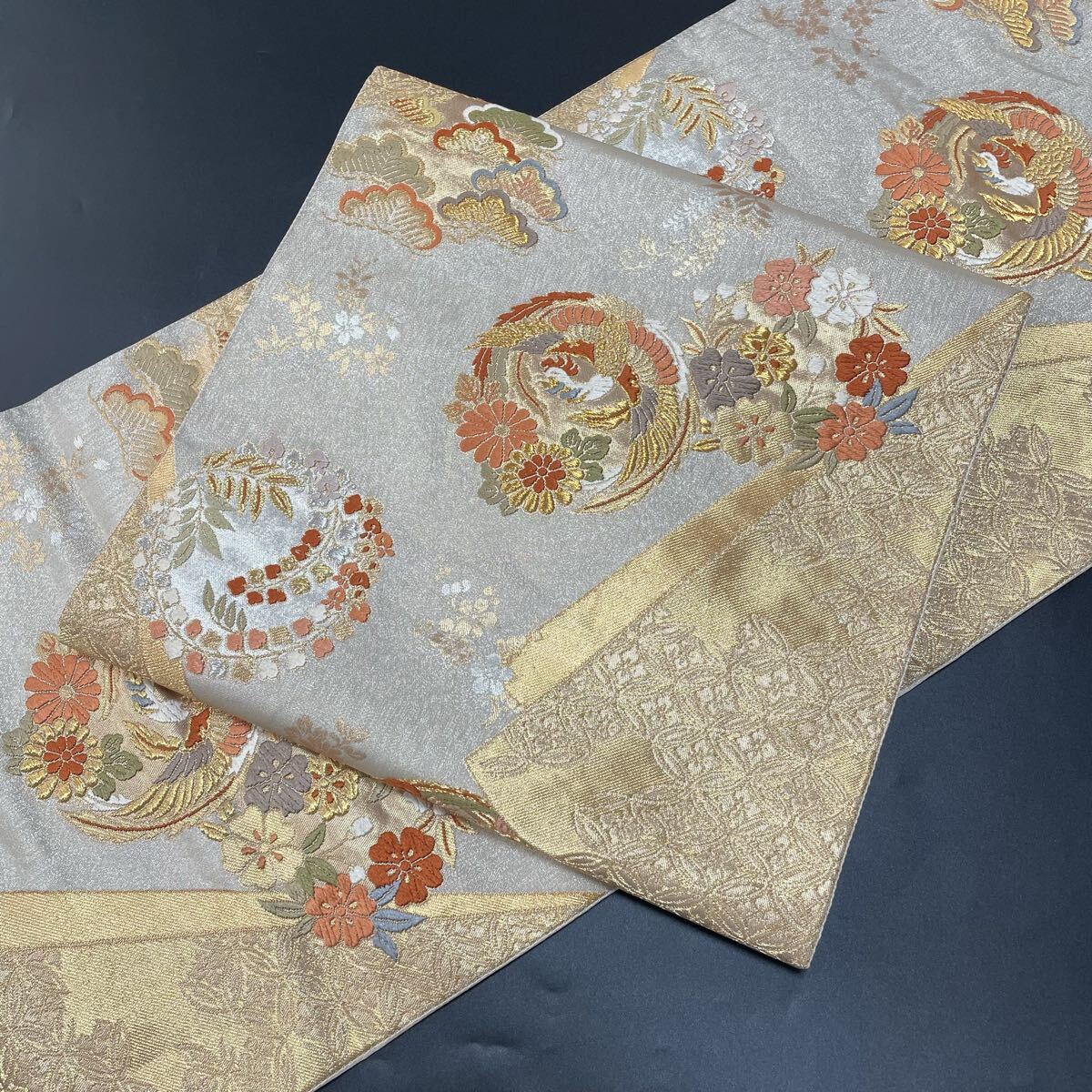 > #H842 美品 袋帯 六通 西陣織 綴織 金銀糸 花丸文 鳳凰 正絹 和装 和服 フォーマル帯【wellriver】