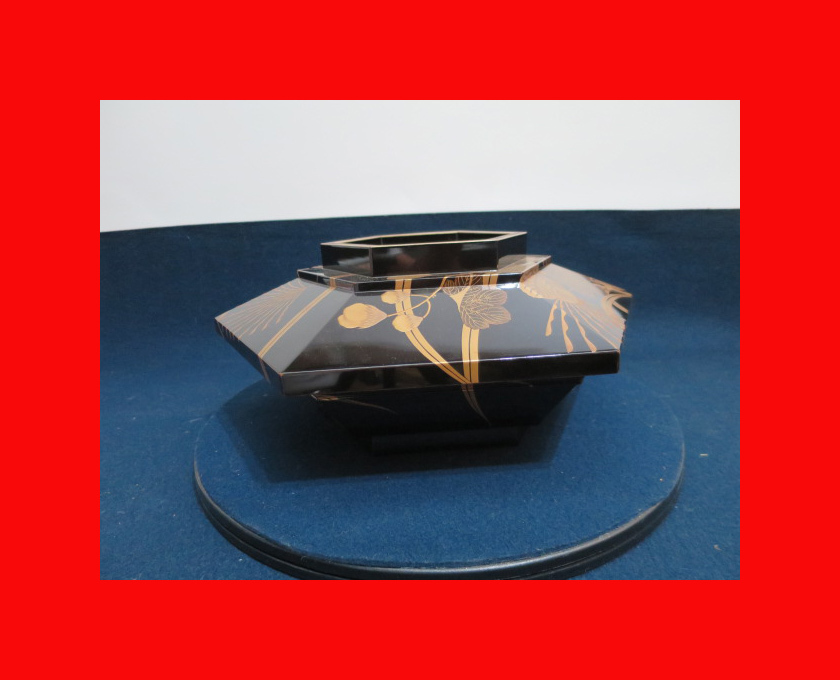 - 【古都京都】「木製蒔絵六角器K-234」茶道具・華道・花瓶・花生・鉄瓶・茶臼・碾き臼・蒔絵・香道〝江〟