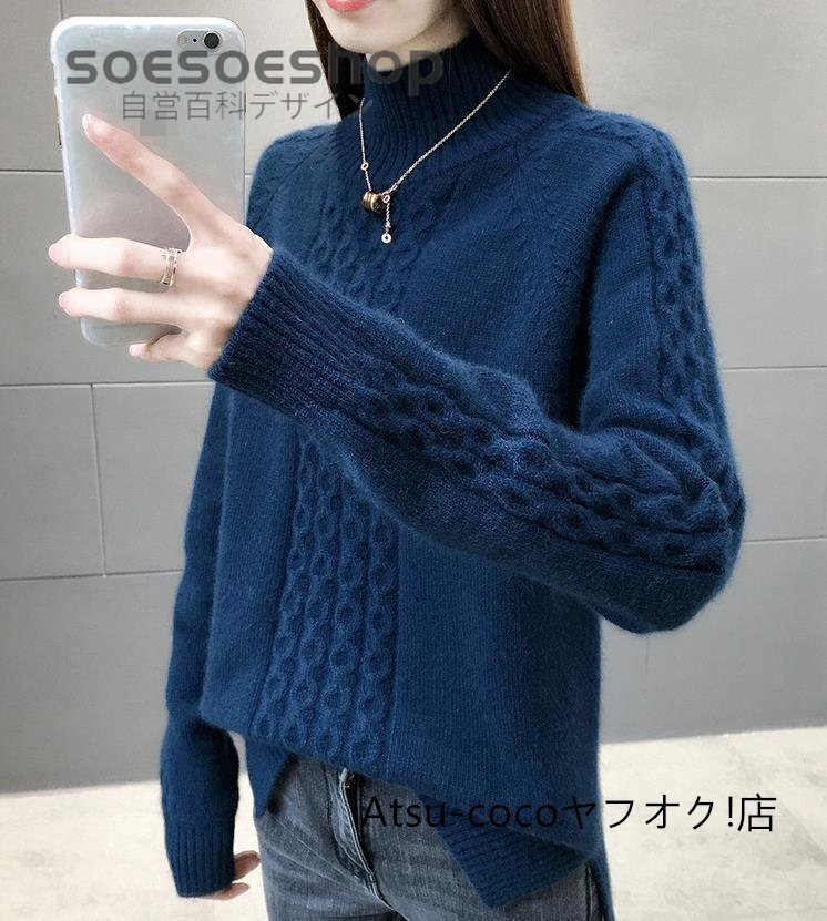 - 6色展開 ハイネック ニット セーター レディース トップス 無地 シンプル フリーサイズ お母さんに