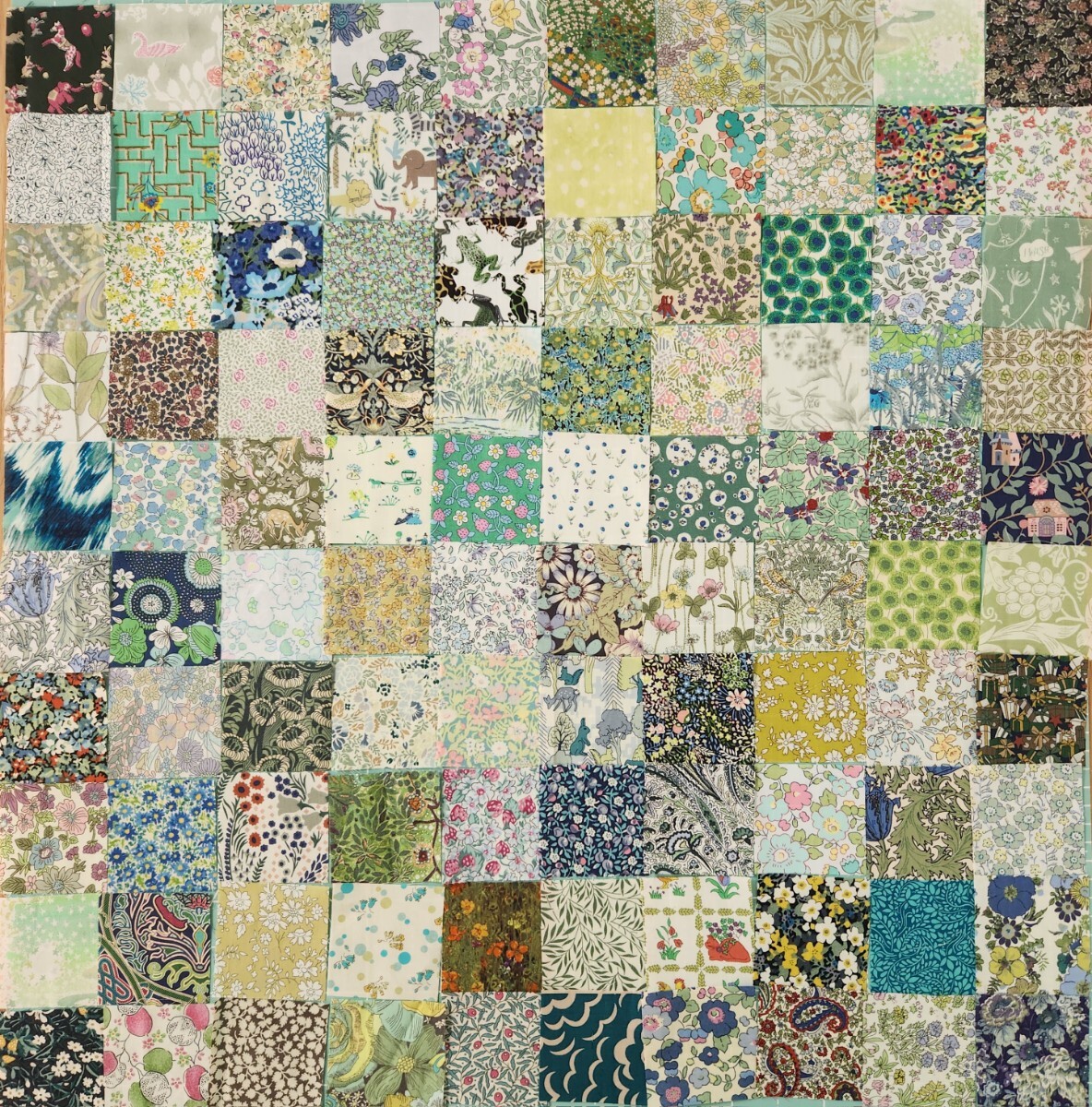 - G219④☆ヴィンテージ入り☆グリーン リバティ☆6×6cmカットクロス☆ 100枚セット☆廃盤生地多数 チェック&ストライプ ホビーラホビーレ