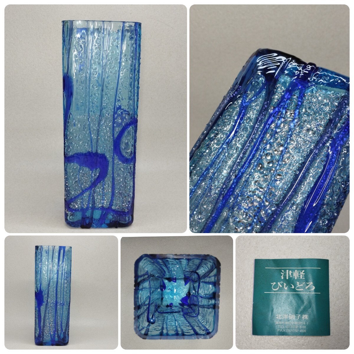 - 津軽 びいどろ 工芸ガラス 北洋硝子 花入 花瓶 フラワーベース 中古 高さ29.7cm 古民家整理品b