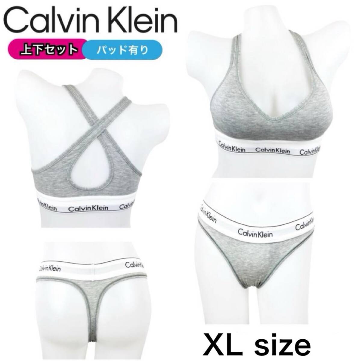 > カルバンクライン calvin klein ブラ Tバック 下着 上下 セット 2点セット クロス グレー XLサイズ アンダーウェア パッドあり 新品