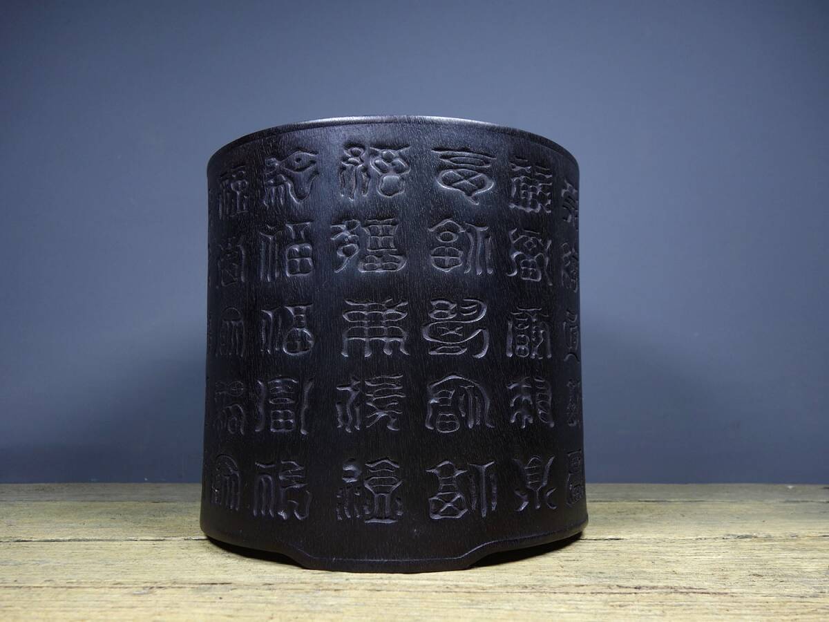 - 『館蔵珍品 血檀木製 細密彫 百福紋 筆筒 文房具 書道品』稀少珍蔵品 古賞物 貴重物品 収蔵品 中国古美術 時代物 古董品