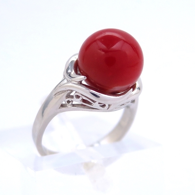 - Pt900 プラチナ リング 指輪 サンゴ10.000ct 珊瑚 天然 コーラル 10号 人気 ジュエリー おしゃれ ソーティング付【中古】/s21545/10004610