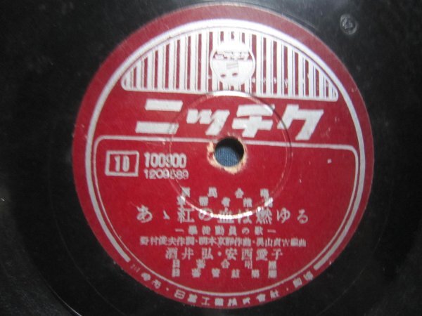 - コロムビア流行歌SP盤695★酒井弘、安西愛子/あゝ紅の血は燃ゆる★伊藤武雄/決戦の海★美麗盤。古関裕而・作曲★ニッチクSPレコード