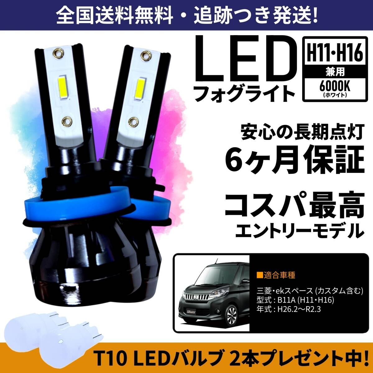 - 【送料無料】三菱 ekスペース ekスペースカスタム B11A LED フォグライト フォグランプ H11 H16 ホワイト 6000K 保証付き
