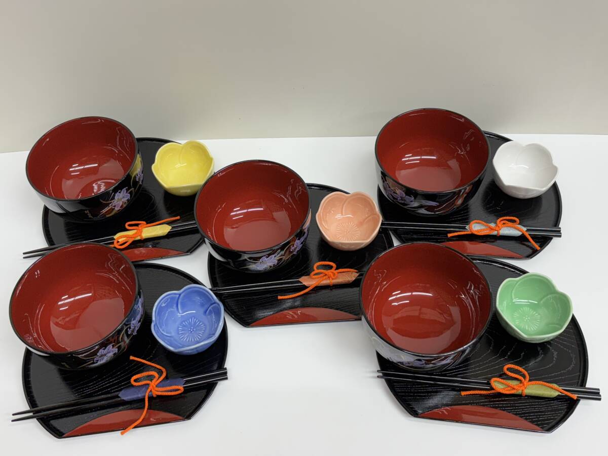 - ★未使用品★ 桂由美 YUMI KATSURA どっしり椀 どんぶり 丼 お椀 箸 小鉢 陶器 多用盆 お盆 5個セット 多用途椀 和食器 漆器 食器