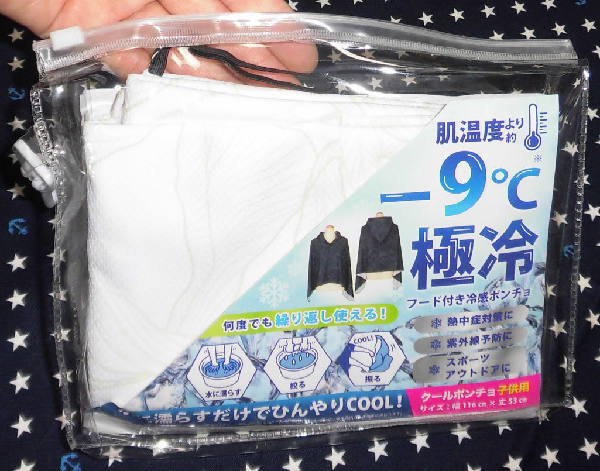 - 新品!フード付き冷感ポンチョ 子供用 白地に柄
