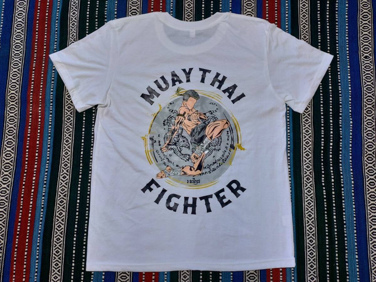 > 未使用 ムエタイファイター 半袖Tシャツ サイズ表記XL(日本サイズM相当) 白 格闘技 K-1 マーシャルアーツ MUAYTHAI