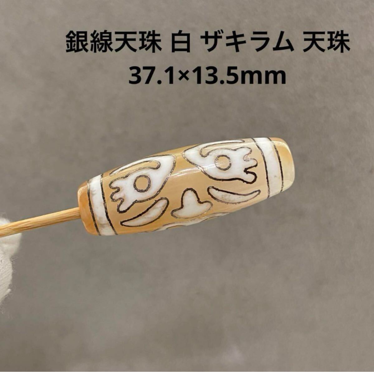 - D884 銀線天珠 白 ザキラム 天珠 37.1×13.5mm
