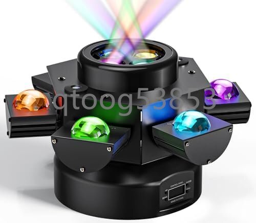 - 舞台照明150W 、6アームムービングヘッドDJライト、4in1 DJディスコライト、リモコン付き、DMX512、サウンド起動制御パーティーライトステ