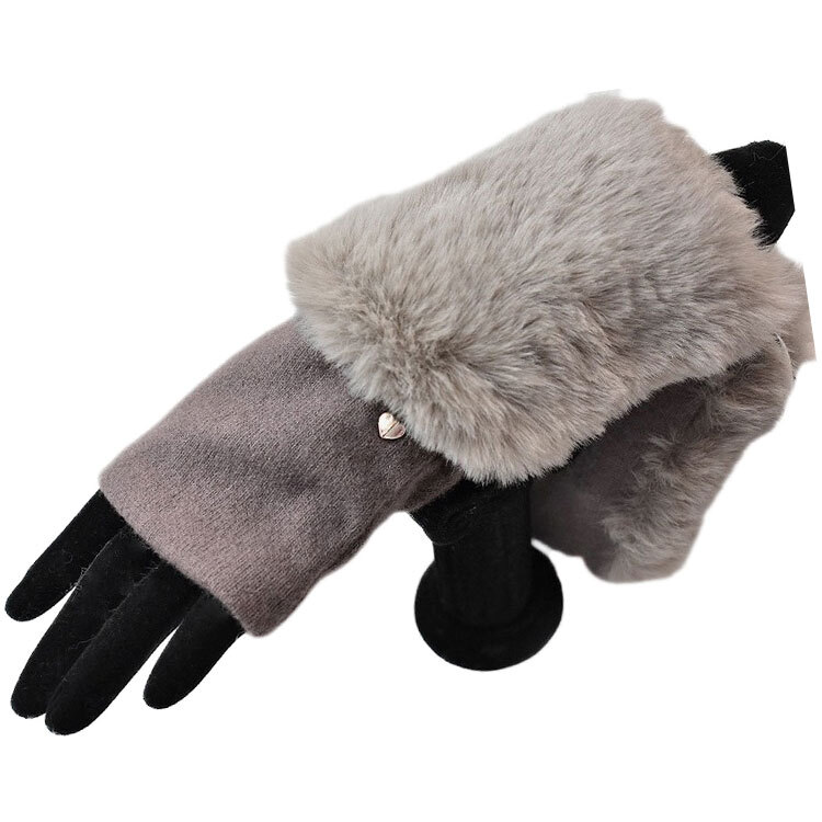 - ケイトスペード ニューヨーク 手袋 レディース ブランド 指なし カシミヤ混 ファーデザイン グレージュ 21~22cm