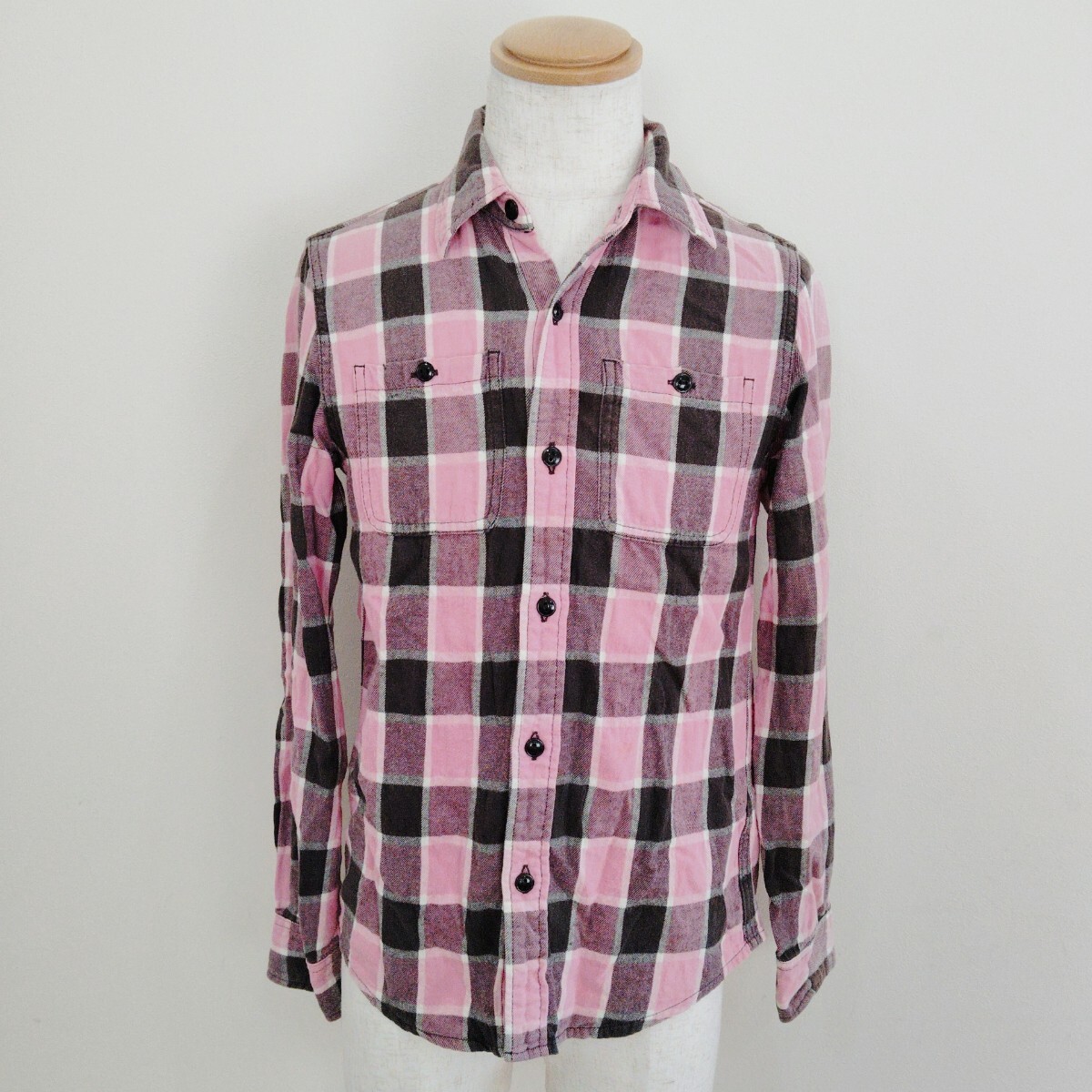 - 0822/1/GAIJIN MADE メンズ 長袖シャツ ブラウス ネルシャツ チェック柄 ピンク