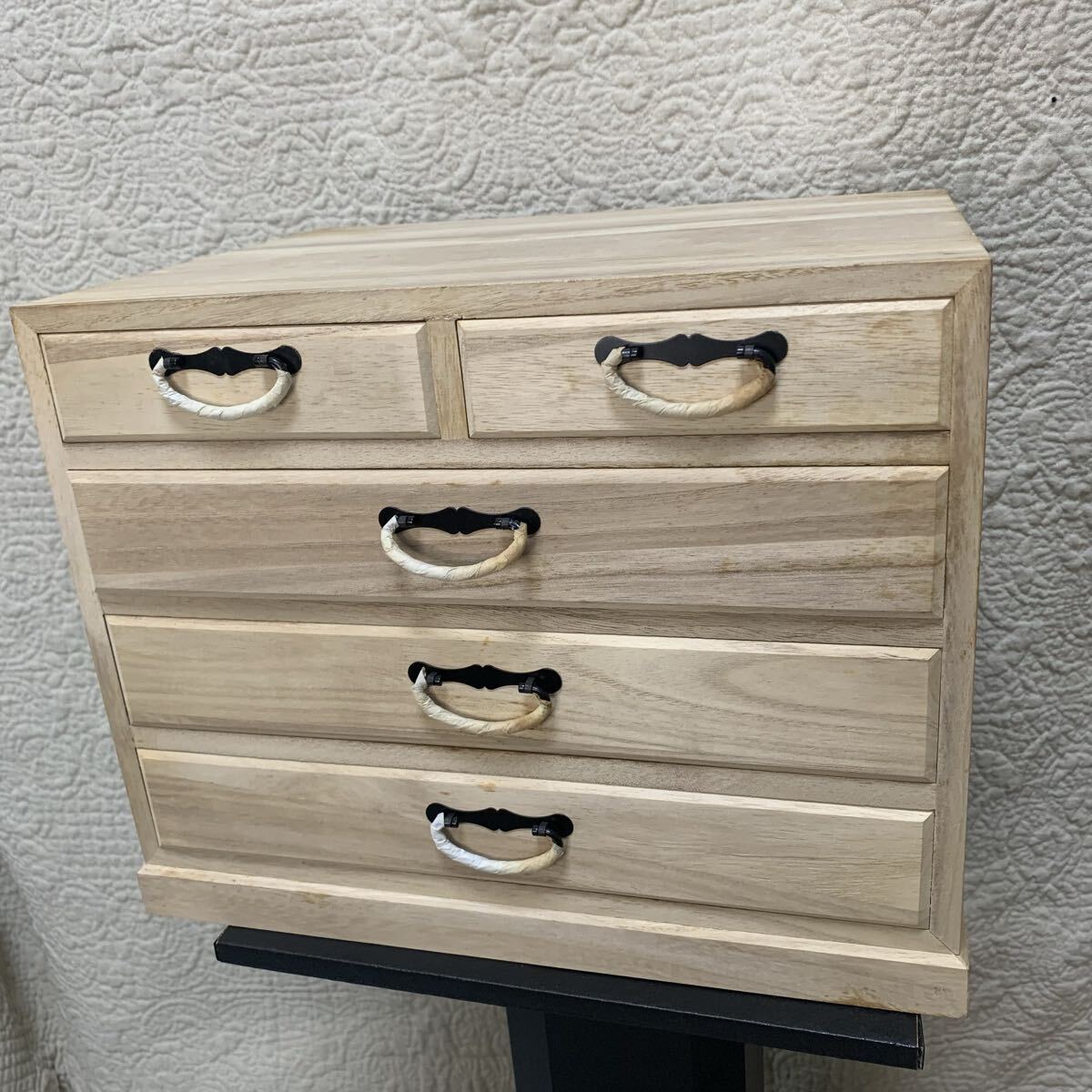 - E150 小箪笥 桐たんす 総桐四段五ツ引箪笥 未使用品 現状品 約W33 x D25 x H26.5cm 小物入れ 木製 小引出し タンス