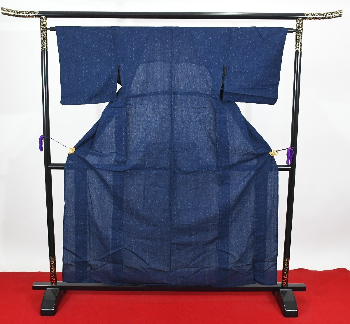 - 紬 つむぎ 単衣 紺 縞 身丈154cm 裄丈64cm ★着物 pb-3773 桜庭呉服店