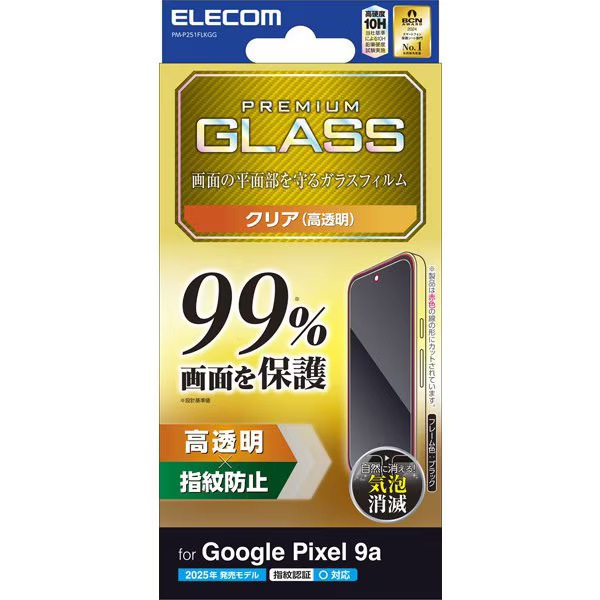 - Google Pixel 9a用画面保護ガラスフィルム カバー率99% 画面の端から端までぴったり保護する超極み設計: PM-P251FLKGG