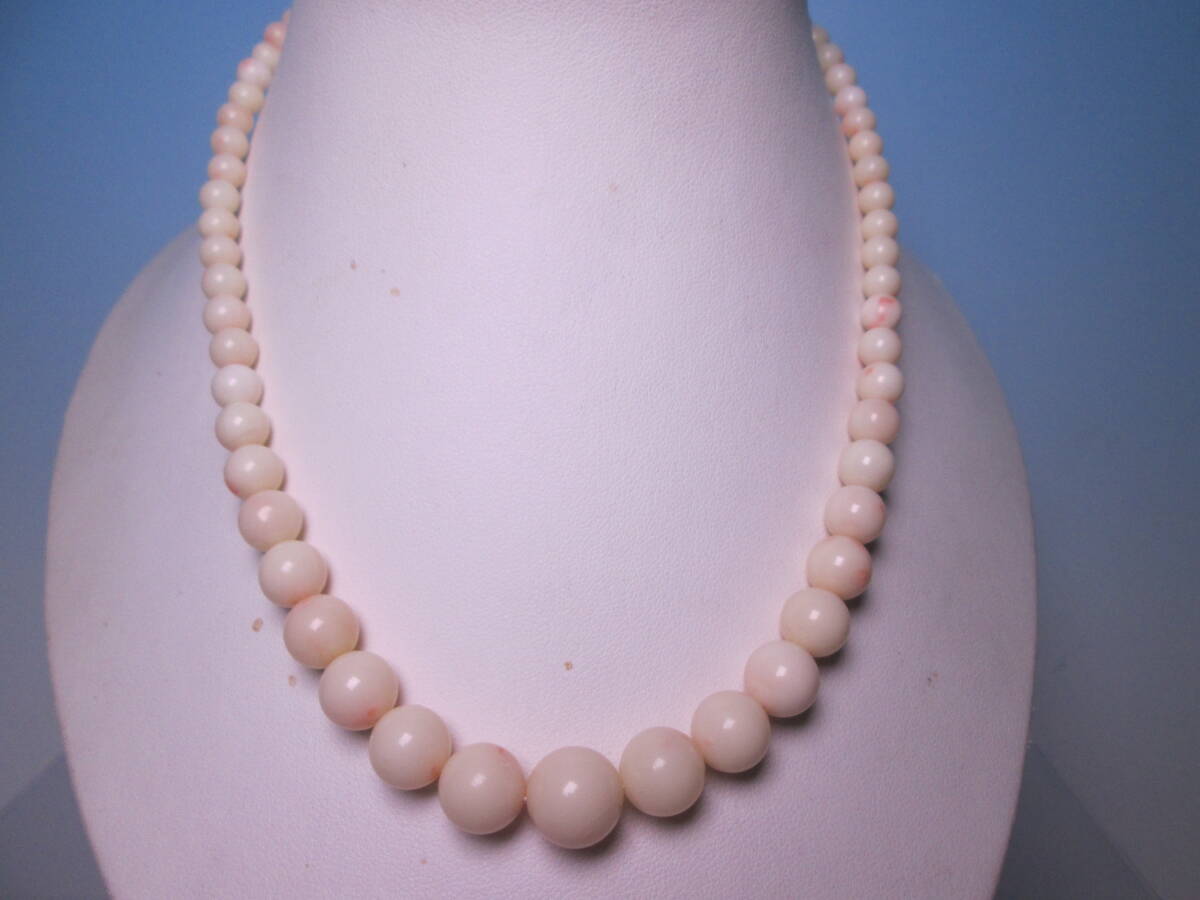 > ☆G SILVER 本珊瑚玉 4mm~1,1cm のネックレス 28,78g 共ケース付