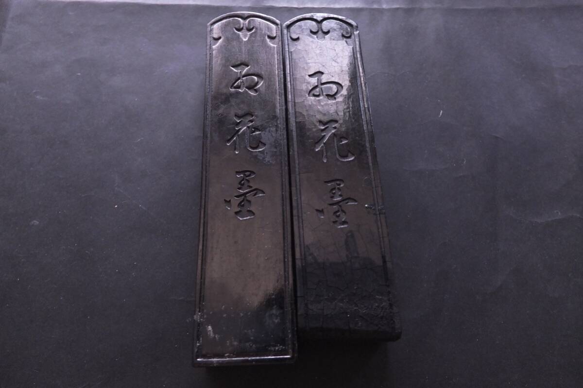 - # 古墨 時代物 古梅園 寧楽一心堂 お花墨 2枚150g 書画書道 #
