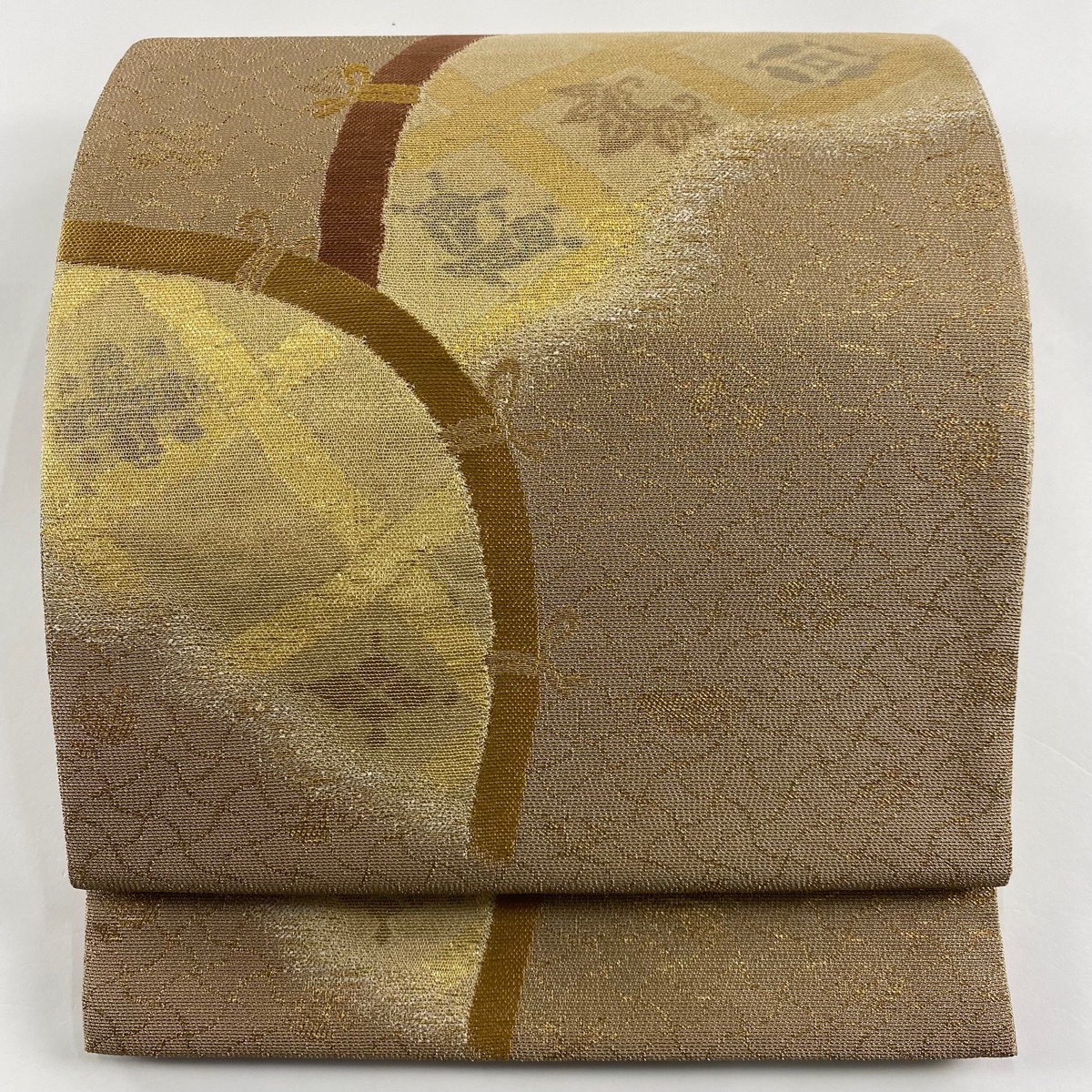 - 袋帯 美品 秀品 光悦垣 宝尽くし 箔 金糸 薄茶色 お太鼓柄 正絹 【中古】