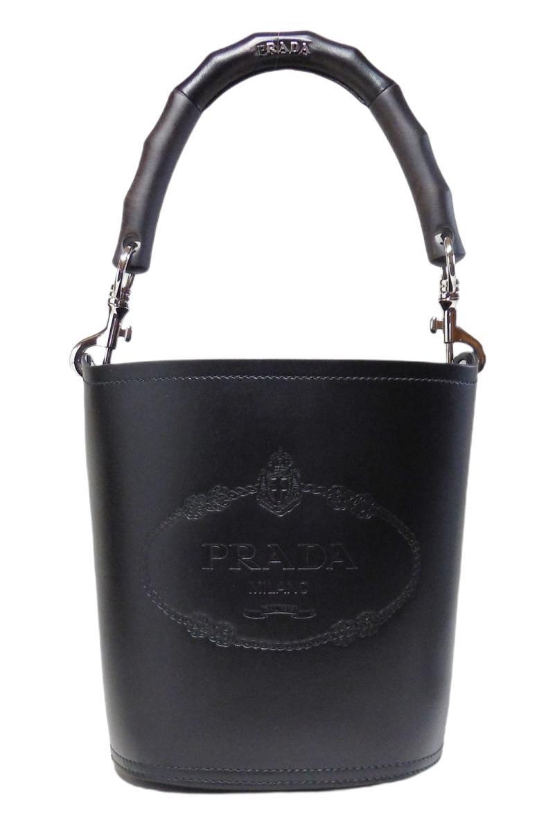 > プラダ タンブール ウッドハンドル レザーバケットバッグ ブラック 1BE048_2AIX_F0002_V_5OL PRADA