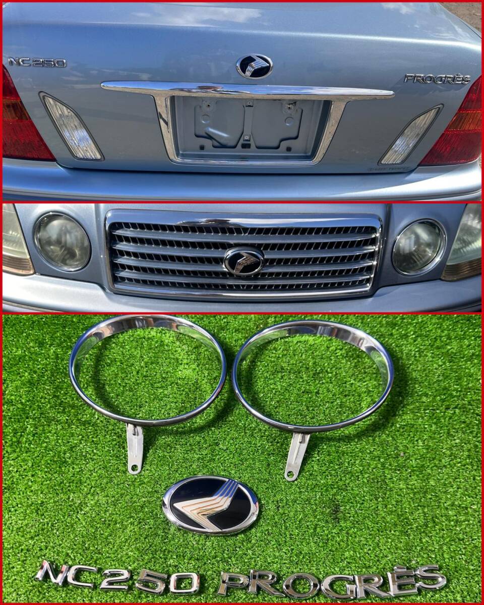 - ZT-5248] 純正トヨタ プログレ JCG10 フロントヘッドライトリング メッキ/クローム+エンブレム PROGRES / NC250