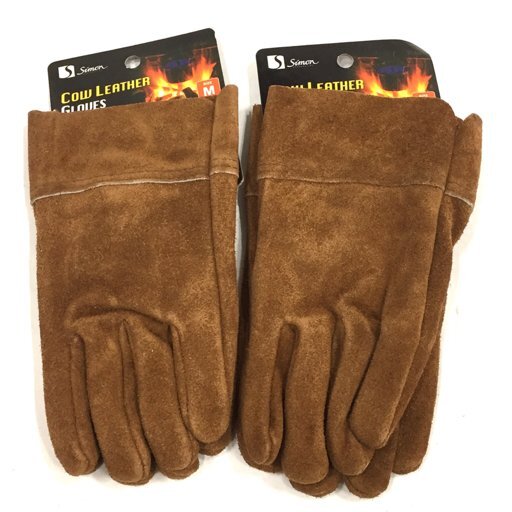 > 美品 シモン CS-910 サイズ M 牛床革 オイル加工 内縫い 革手袋 Cow LEATHER GLOVES 裏地付 タグ付き 計2点 セット