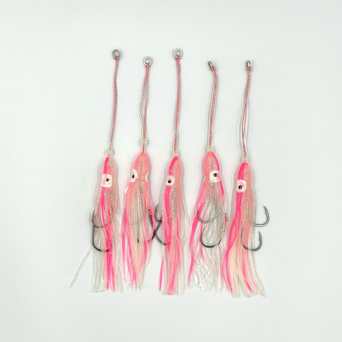 - 104390 インチクやタイラバに 蓄光 夜光タイプ タコベイト 120mm ホワイト&ピンク 5本セット マダイ 青物 ヒラメ タチウオ ハタ