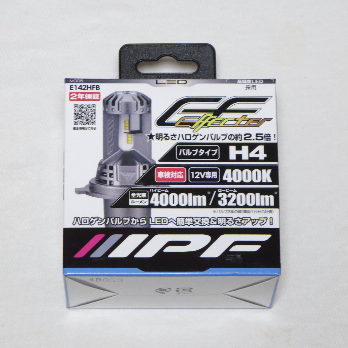 > E142HFB IPF H4 LEDバルブ 4000K 4000/3200lm 12V専用 25/25W バルブ2本入 車検対応 ●新品・未開封♪●