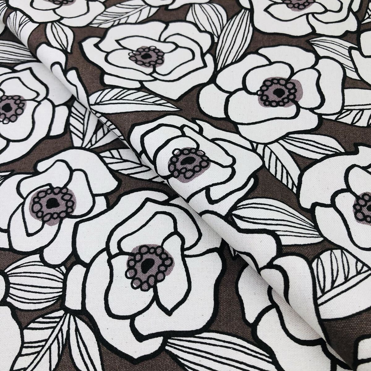- 1m 日本製 花柄 北欧 コットン オックス 生地 はぎれ コットン 110×100 花柄 ブラウン